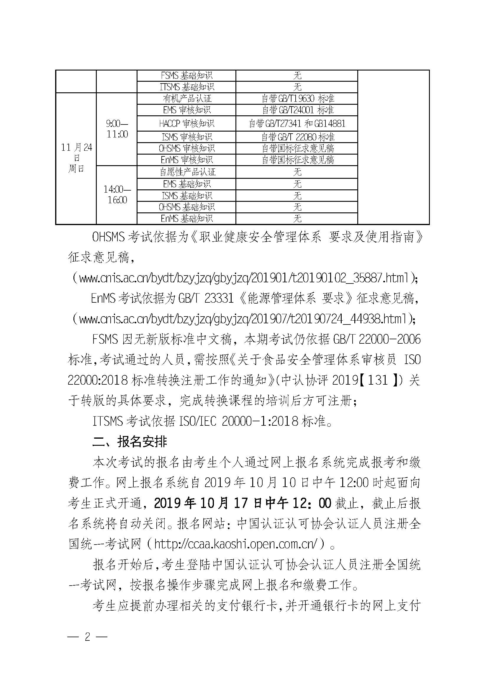 關于舉辦 2019 年第2 期認證人員注冊全國統一考試的通知